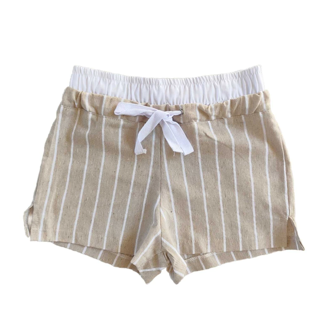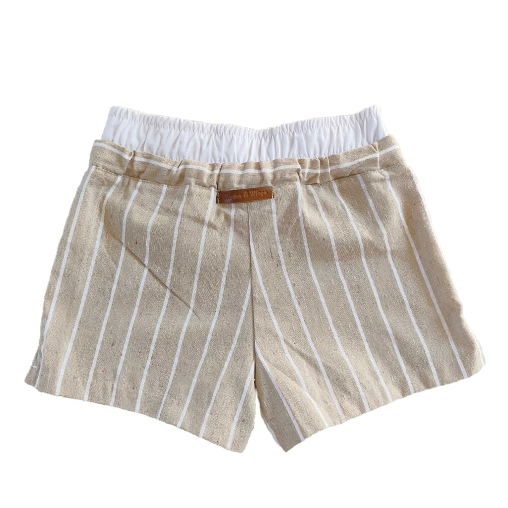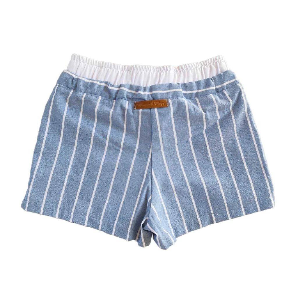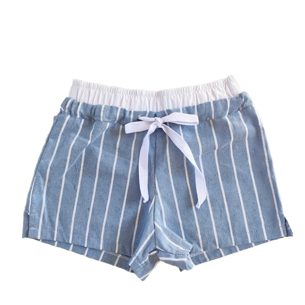 O Short Listrado Infantojuvenil é a peça perfeita para um look fresquinho e estiloso! Com listras verticais brancas e disponível nas cores azul e bege, ele traz um toque moderno e delicado. O cós duplo garante um ajuste confortável, enquanto a amarração frontal adiciona um charme extra. Feito em 100% algodão, proporciona maciez e leveza para o dia a dia.